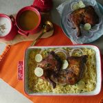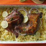 Serve chicken with saffron rice,onion rings,yogurt raita & chutney.