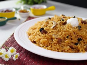 -Add rice,mix well & cook on medium flame until water is reduced (5-6 minutes).