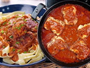 Fresh parsley aur lal mirch crushed sprinkle ker lein aur spaghetti ko grilled chicken aur 7up ka saath serve karein.