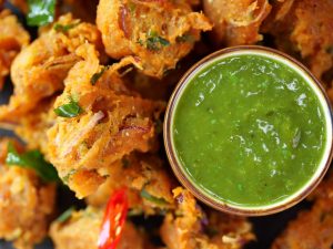 -In a blender jug,add fresh coriander,mint leaves,curry leaves,garlic,green chillies,raw mango,lemon juice & water,blend well & set aside.