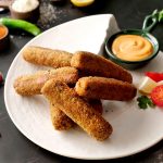 Now coat fingers into all-purpose flour then dip into whisked egg and coat with breadcrumbs and roll again on working surface to maintain its shape (makes 14-15) and freeze for 30 minutes.