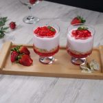 -Serving glass mein strawberry & jelly mixture,biscuit crumbs,tayyar strawberry cream mixture aur strawberry & jelly mixture dal dein.