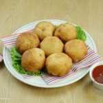 Cut corners of the bread. Dip bread in water and press to drain excess water. Stuff potato filling and cheese and cover with the bread to make a bread ball. Repeat same process for all bread slices.