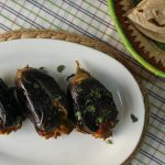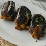 In frying pan,add olive oil and place stuffed brinjals,cover and cook on low flame until done (approx. 25-30 minutes) and keep turning sides or flip to cook evenly.