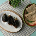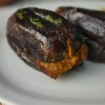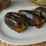Baigan mein char slit laga lein aur tayyar mixture sa bhar dein.