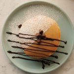 Sprinkle icing sugar,drizzle chocolate syrup,decorate with chocolate chips & serve!