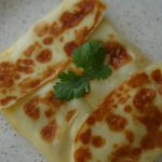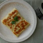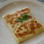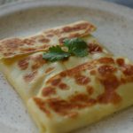 Turn off the flame,on prepared crepe,add cheese slice,chicken filling and fold all four sides carefully.