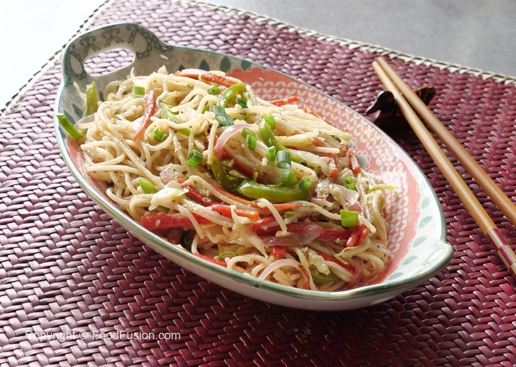 Boiled spaghetti,safed mirch powder,kali mirch crushed,nama,chicen powder,soy sauce,hot sauce aur sirka dal ker 1-2 minutes kliya ache tarhan mix ker lein.