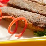 Grease hands with oil and set the mixture on skewers and give them rest for 10 minutes to settle.