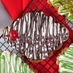 -On a caramelized croissant,add & spread cream frosting,chocolate ganache,chocolate chips & garnish with cherry.